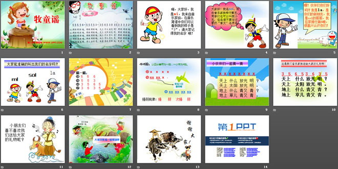 关键词:牧童谣教学课件,一年级下册音乐PPT课件下载,一年级音乐幻灯片课件下载,牧童谣PPT课件下载,.PPT格式;