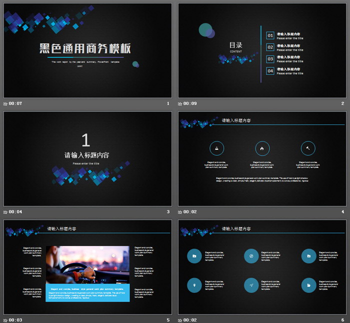 这是一套简洁黑色通用商务PPT模板,共25张;