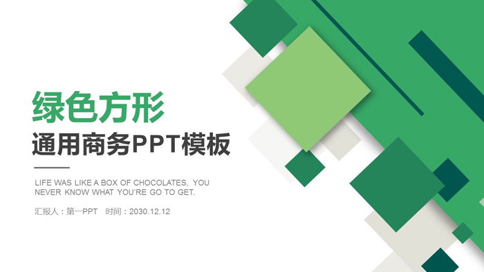 这是一套绿色方形组合背景的,通用商务PPT模板,共20张;