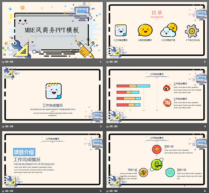 这是一套可爱卡通MBE风格PPT模板,共26张。第一PPT模板网提供幻灯片模板免费下载;
