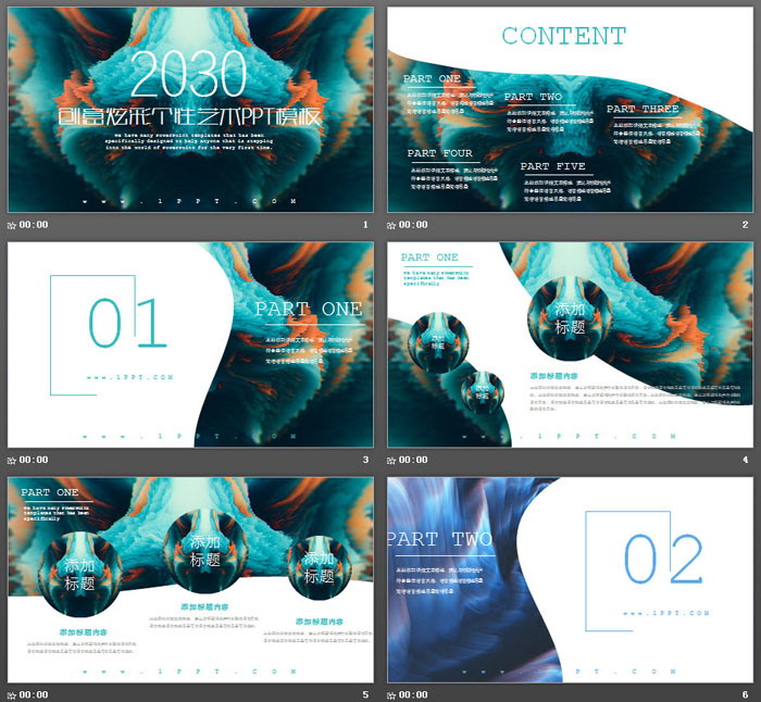 这是一套炫彩个性艺术渲染图片排版PPT模板,共24张;