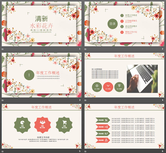 这是一套水彩花卉PPT模板,共24张。第一PPT模板网提供幻灯片模板免费下载;