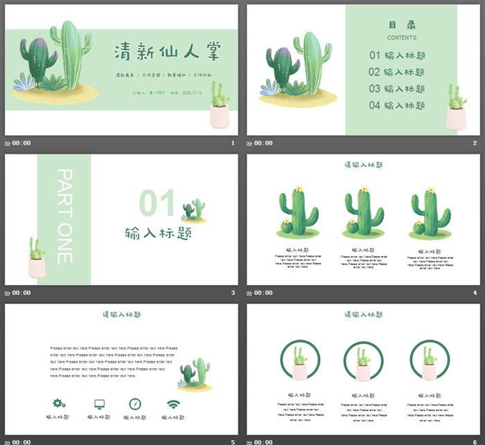 这是一套简洁小清新的,水彩仙人掌PPT模板,共25张;