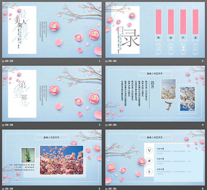 这是一套唯美风格的最美人间四月天PPT模板,共23张。