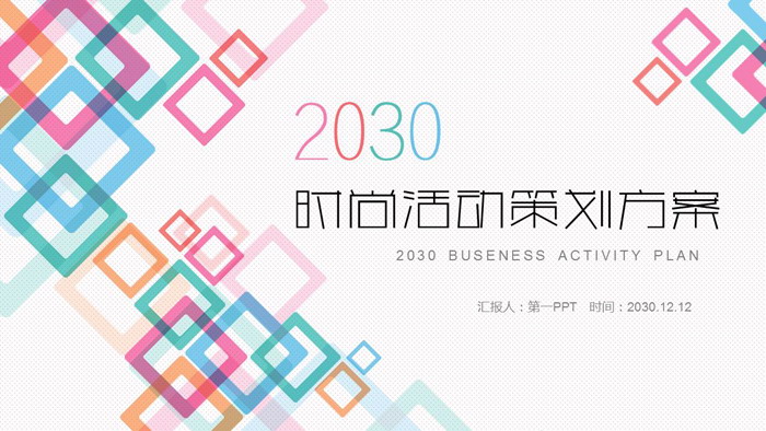 这是一套彩色方格背景的,时尚活动策划方案PPT模板,共25张;