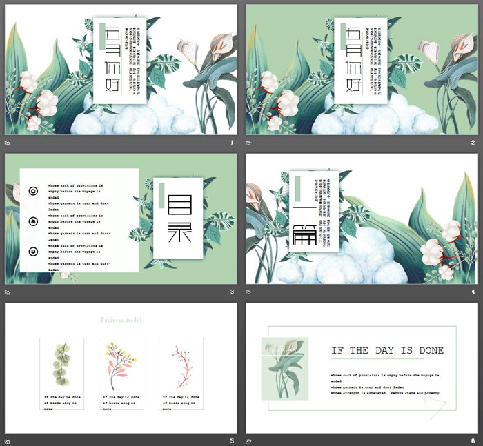 这是一套艺术手绘棉花百合背景的,五月你好PPT模板,共24张;