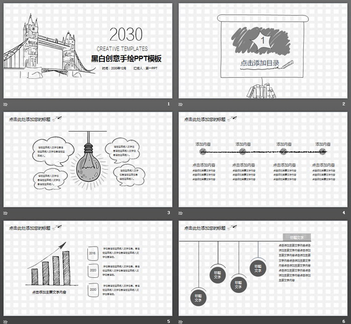黑白创意手绘PPT模板,共29页;