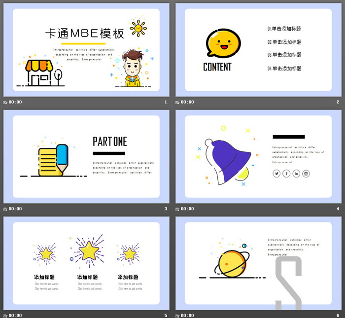 这是一套可爱卡通小男生MBE风格PPT模板,共23页;