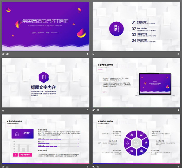 这是一套简洁紫色渐变背景的,商务PPT模板。共23张;