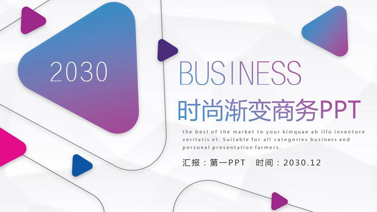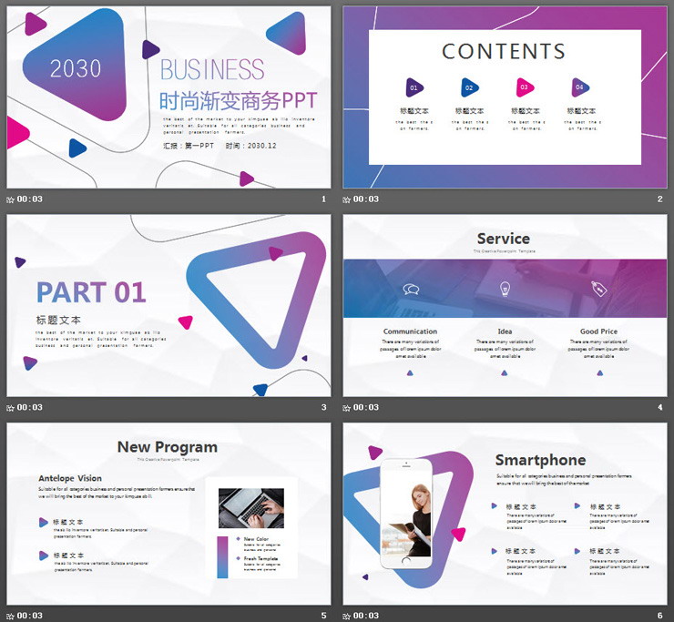 时尚蓝紫渐变三角形PPT模板,共24页;