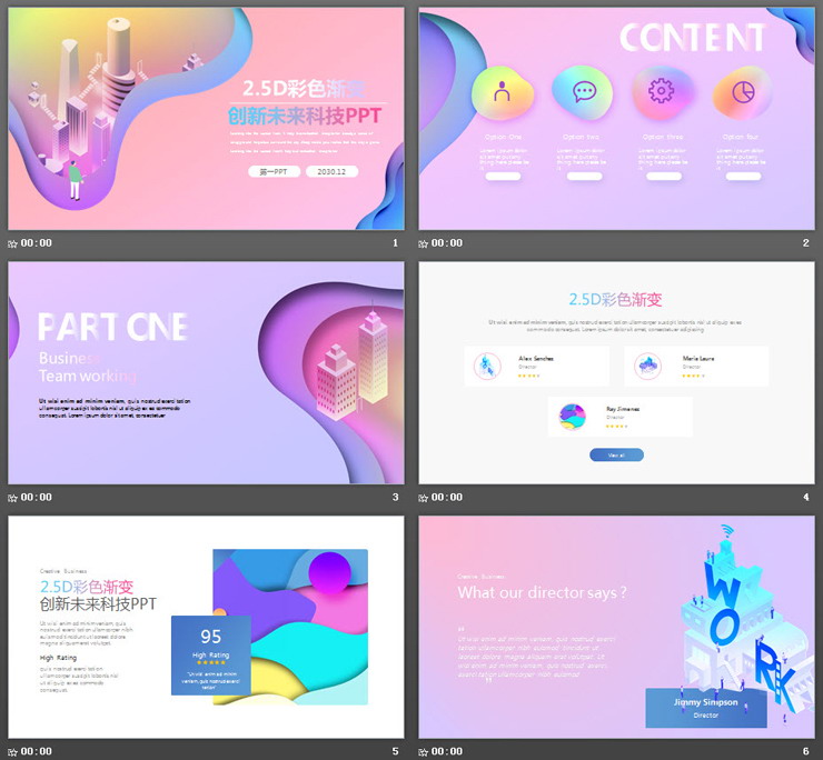 2.5D彩色渐变通用商务PPT模板,共26页;