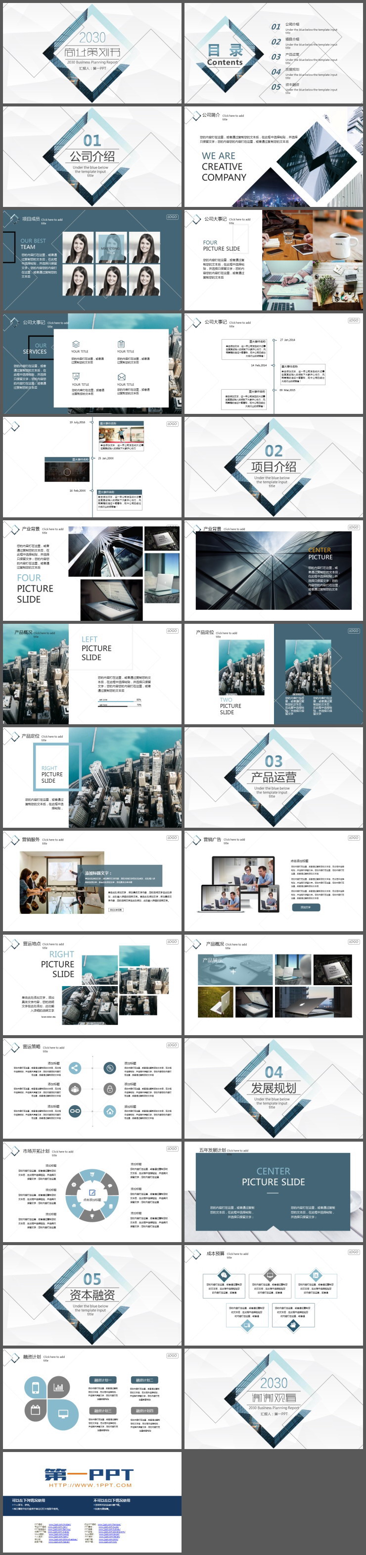大气简洁的菱形背景商业计划书PPT模板,共28页;