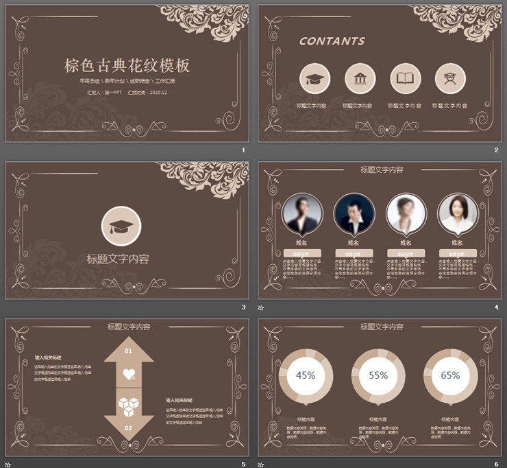 棕色古典花纹PPT模板,共32页;