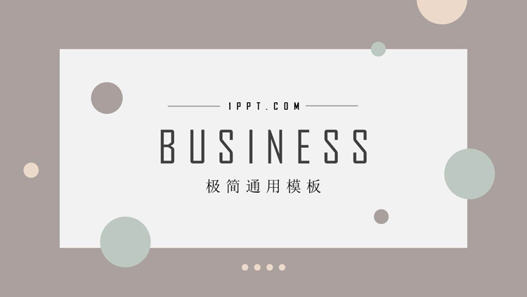 PPT模板使用了莫兰迪色系设计。PPT封面使用了几个大小不等的圆点装饰,中间填写PPT标题文字。界面为极简风格。