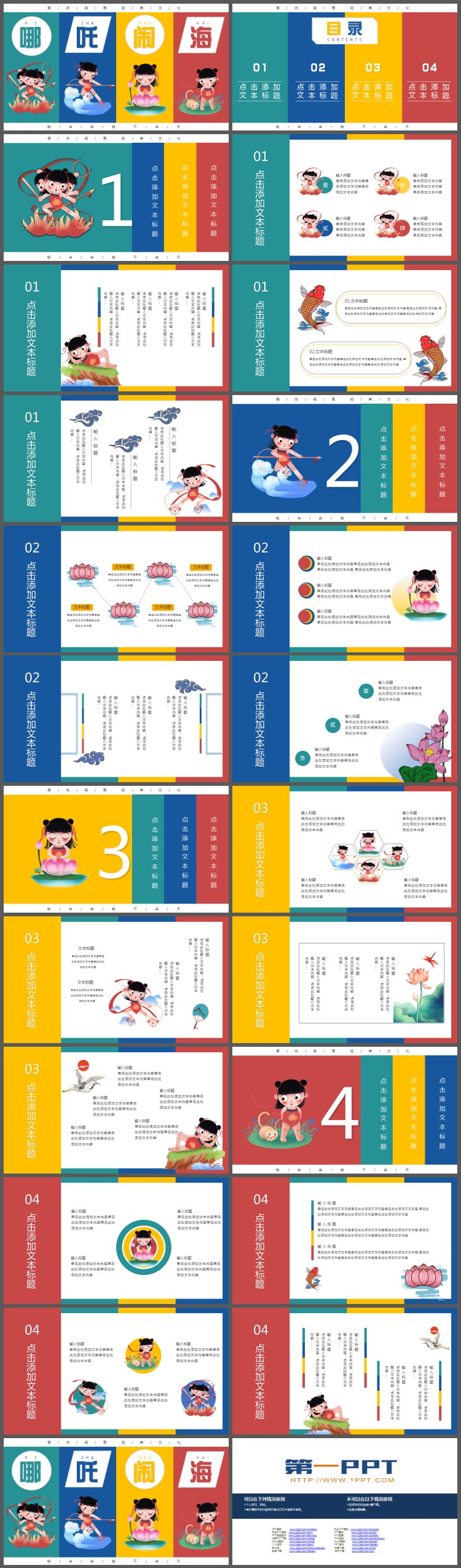 这是一套可爱卡通哪吒闹海主题PPT模板,共23页;