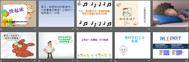 关键词:快起床教学课件,一年级下册音乐PPT课件下载,一年级音乐幻灯片课件下载,快起床PPT课件下载,.PPT格式;