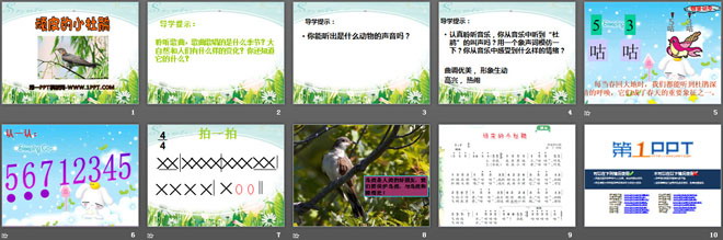 关键词:顽皮的小杜鹃教学课件,三年级下册音乐PPT课件下载,三年级音乐幻灯片课件下载,顽皮的小杜鹃PPT课件下载,.PPT格式;
