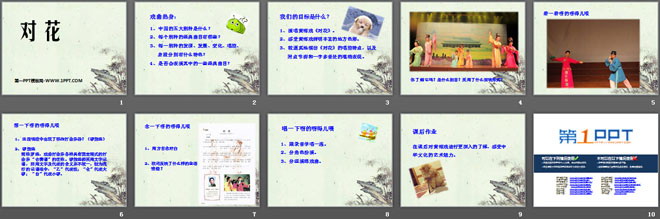 关键词:对花教学课件,四年级下册音乐PPT课件下载,四年级音乐幻灯片课件下载,对花PPT课件下载,.PPT格式;