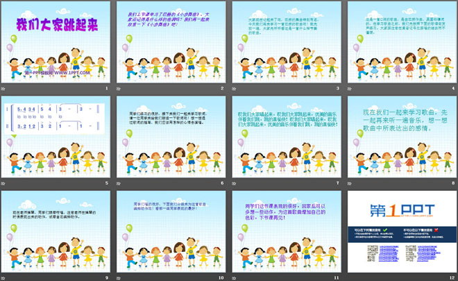 关键词:我们大家跳起来教学课件,四年级下册音乐PPT课件下载,四年级音乐幻灯片课件下载,我们大家跳起来PPT课件下载,.PPT格式;