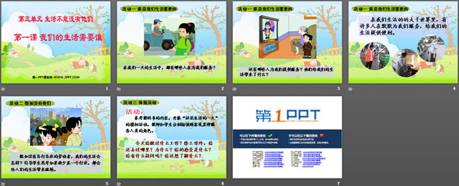 关键词:生活不能没有他们教学课件,我们的生活需要谁教学课件,新人教版三年级下册品德与社会PPT课件,三年级品德与社会幻灯片课件下载,生活不能没有他们PPT课件下载,我们的生活需要谁PPT课件下载,.ppt格式