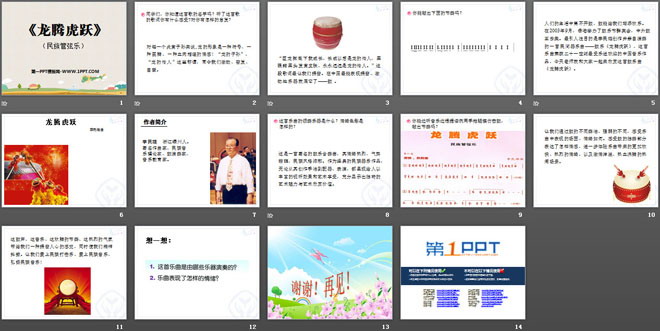关键词:龙腾虎跃教学课件,六年级下册音乐PPT课件下载,六年级音乐幻灯片课件下载,龙腾虎跃PPT课件下载,.PPT格式;