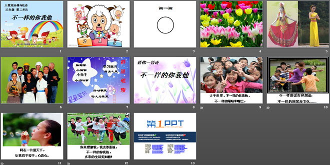 关键词:我们共欢乐教学课件,不一样的你我他教学课件,新人教版三年级下册品德与社会PPT课件,三年级品德与社会幻灯片课件下载,我们共欢乐PPT课件下载,不一样的你我他PPT课件下载,.ppt格式