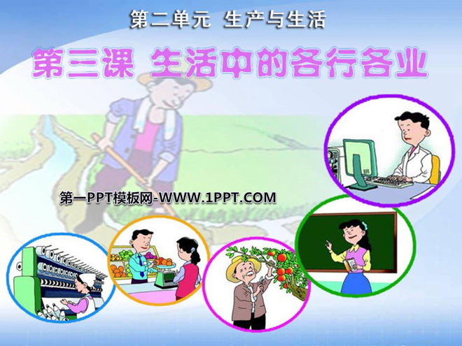 关键词:生产与生活教学课件,生活中的各行各业教学课件,新人教版四年级下册品德与社会PPT课件,四年级品德与社会幻灯片课件下载,生产与生活PPT课件下载,生活中的各行各业PPT课件下载,.ppt格式