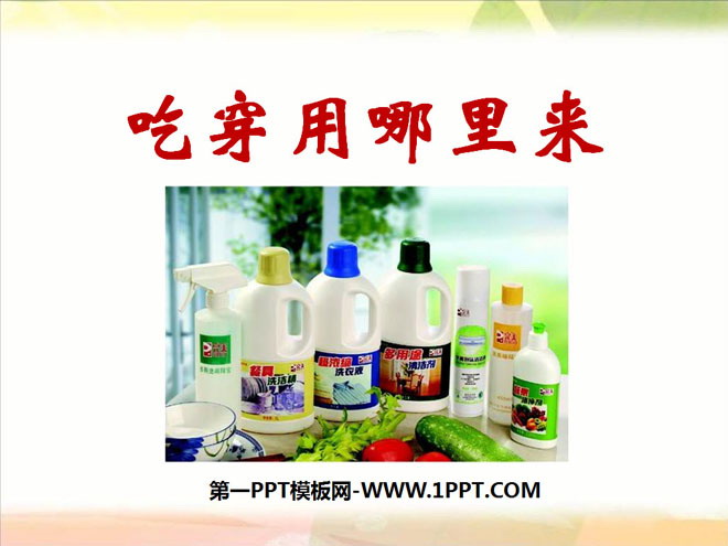 关键词:生产与生活教学课件,吃穿用哪里来教学课件,新人教版四年级下册品德与社会PPT课件,四年级品德与社会幻灯片课件下载,生产与生活PPT课件下载,吃穿用哪里来PPT课件下载,.ppt格式