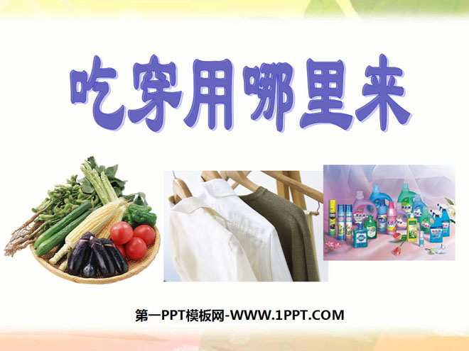 关键词:生产与生活教学课件,吃穿用哪里来教学课件,新人教版四年级下册品德与社会PPT课件,四年级品德与社会幻灯片课件下载,生产与生活PPT课件下载,吃穿用哪里来PPT课件下载,.ppt格式