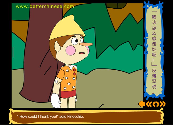 “你救过我,我现在报答你。在这个世界上,我们应该互相帮助。”大狗说完,和皮诺奇道了别,就回家去了。