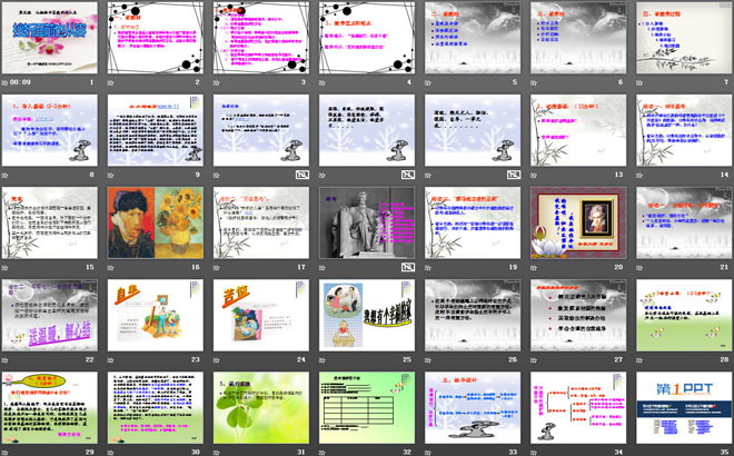 通过介绍向日葵的作者梵高的生平与观看《千手观音》的视频,让学生对比思考:同样遇到挫折结果是否一样,为什么?