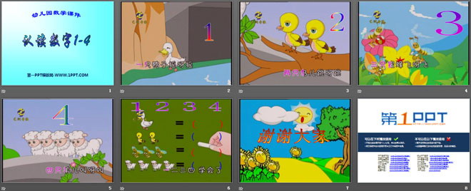 关键词:认读数字1-4教学课件,幼儿园数学PPT课件下载,幼儿园数学幻灯片课件下载,认读数字1-4PPT课件下载,.PPT格式;