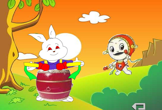 小兔学打鼓。