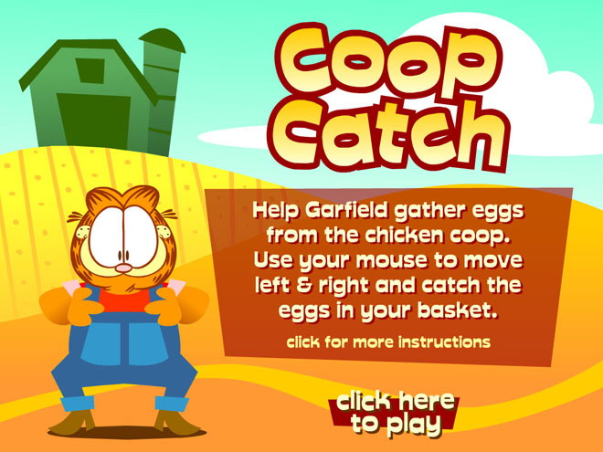 本课件是由第一PPT整理发布,包含了小游戏加菲猫鸡场打工,适用于幼儿园教学娱乐使用,是非常好的幼儿园游戏课件,敬请下载!
