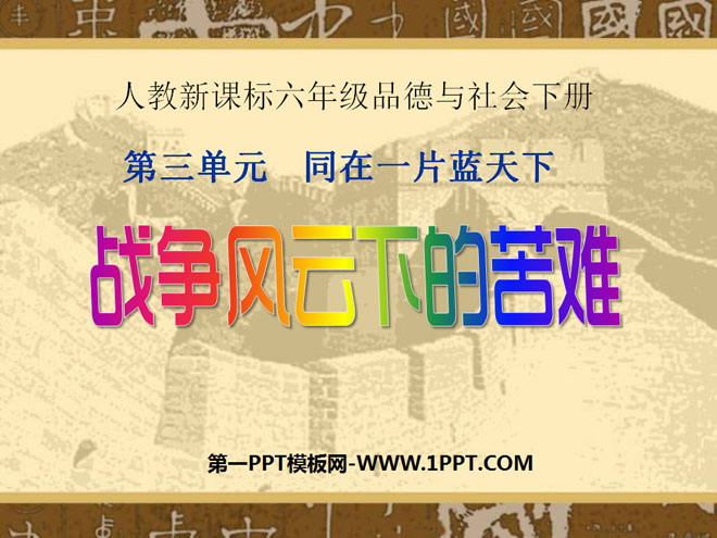 关键词:同在一片蓝天下教学课件,战争风云下的苦难教学课件,新人教版六年级下册品德与社会PPT课件,六年级品德与社会幻灯片课件下载,同在一片蓝天下PPT课件下载,战争风云下的苦难PPT课件下载,.ppt格式