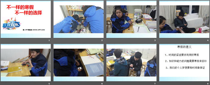 为了实现我们的宏伟目标,我们要珍惜寒假带来的机遇,搏尽一份力,狠下一条心,共圆一个梦。我们将全力以赴,永不放弃。从现在起,我们会以最少的悔恨面对过去,用最少的浪费面对现在,用最多的梦想面对未来。让我们携起手来,挑战极限,满载老师、父母对我们的期望,勇敢地起航,我们将用拼搏扼住命运的咽喉,用自信铸就明日的辉煌,在班主任的发展史上写下光辉灿烂的一页。