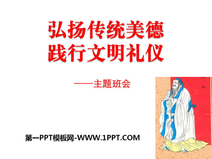 关键词:弘扬中华传统美德PPT课件,弘扬中华传统美德主题班会PPT下载,德育主题班会PPT下载,.PPT格式;