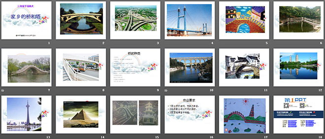 本课件通过精美的图片和学生作品帮助学生更好的学习小学美术家乡的桥和塔的内容,是非常实用的小学美术PPT课件。