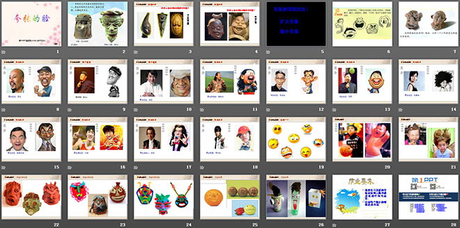 本课件通过大量的精美图片展示了小学美术中夸张的脸的教学内容,是非常好的小学美术教学课件。