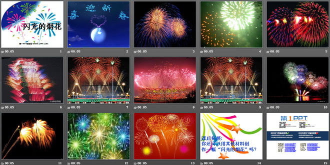 本课件中有很多漂亮的烟花图片供学生欣赏,帮助学生学习本课《闪光的烟花》中的美术知识。