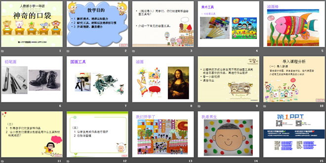 关键词:神奇的口袋课件PPT,一年级上册美术PPT课件下载,一年级美术幻灯片课件下载,神奇的口袋PPT课件下载,.PPT格式