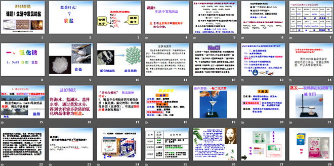 关键词:盐化肥教学课件,生活中常见的盐教学课件,新人教版九年级下册化学PPT课件,九年级化学幻灯片课件下载,盐化肥PPT课件下载,生活中常见的盐PPT课件下载,.ppt格式