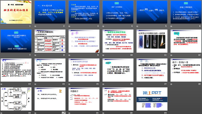 关键词:走进化学世界教学课件,物质的变化和性质教学课件,人教版九年级上册化学PPT课件下载,九年级化学幻灯片课件下载,走进化学世界PPT课件下载,物质的变化和性质PPT课件下载,.PPT格式;