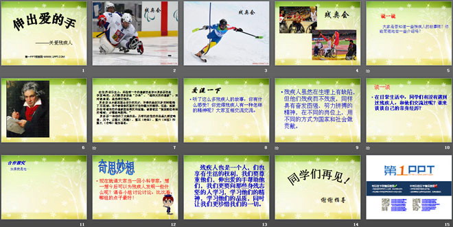 听了这么多残疾人的故事,你有什么感受?你觉得残疾人有一种怎样的精神呢?大家互相交流交流。
