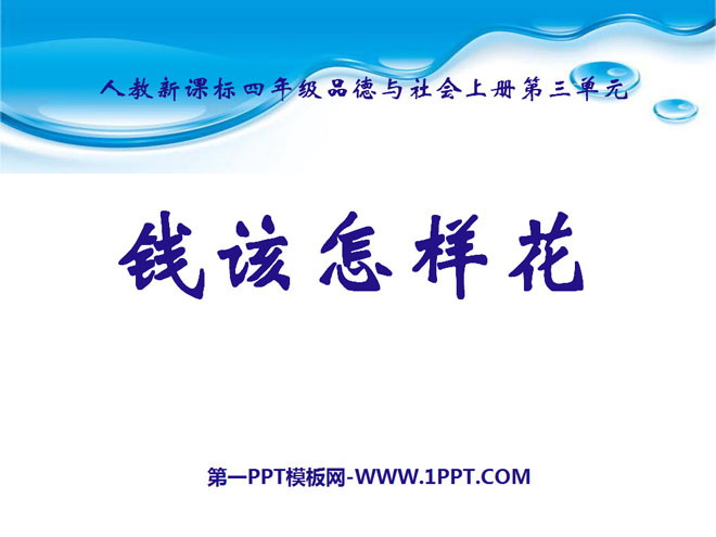 关键词:花钱的学问教学课件,钱该怎样花教学课件,人教版四年级上册品德与社会PPT课件下载,四年级品德与社会幻灯片课件下载,花钱的学问PPT课件下载,钱该怎样花PPT课件下载,.PPT格式;