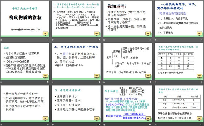 关键词:物质的构成教学课件,构成物质的微粒教学课件,湘教版九年级上册化学PPT课件下载,九年级化学幻灯片课件下载,物质的构成PPT课件下载,构成物质的微粒PPT课件下载,.PPT格式;