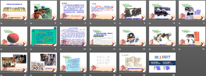 关键词:我爱祖国山和水教学课件,祖国江山的保卫者教学课件,人教版五年级上册品德与社会PPT课件下载,五年级品德与社会幻灯片课件下载,我爱祖国山和水PPT课件下载,祖国江山的保卫者PPT课件下载,.PPT格式;