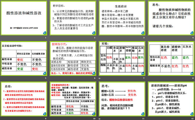 1、认识常见的酸碱指示剂,能用酸碱指示剂区别酸性溶液和碱性溶液