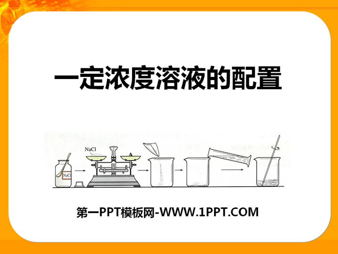 关键词:一定浓度溶液的配置教学课件,湘教版九年级上册化学PPT课件下载,九年级化学幻灯片课件下载,一定浓度溶液的配置PPT课件下载,.PPT格式;