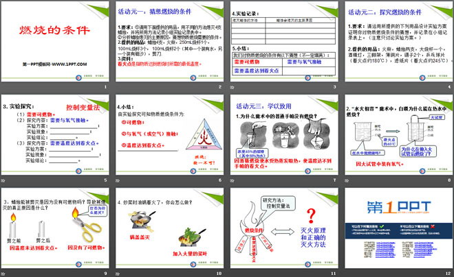 关键词:燃烧的条件教学课件,湘教版九年级上册化学PPT课件下载,九年级化学幻灯片课件下载,燃烧的条件PPT课件下载,.PPT格式;